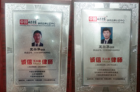 浩云企業(yè)律師團(tuán)特邀顧問——王興華主任榮獲5A級誠信律師